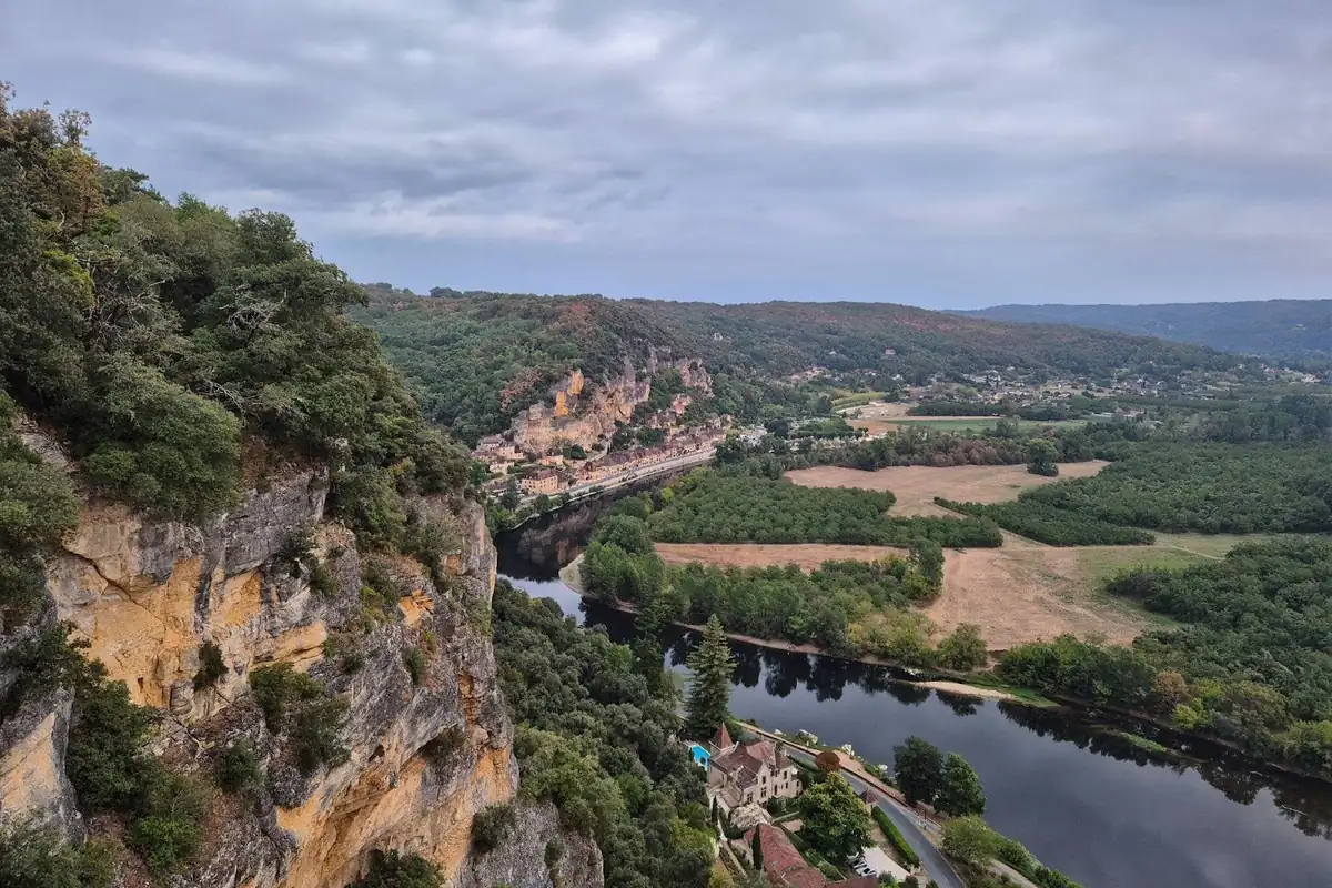 Suivez les flèches jusqu'au belvédère pour ne rien manquer de la vue. Vous vous trouvez sur un éperon rocheux qui s'avance dans le vide : d'un côté, la falaise, et devant vous, la campagne périgourdine qui s'étend à vos pieds. De là, vous pourrez admiret le très joli village de La Roque-Gageac, avec ses maisons anciennes typiques de la Dordogne, qui zigzague entre champs et forêts.