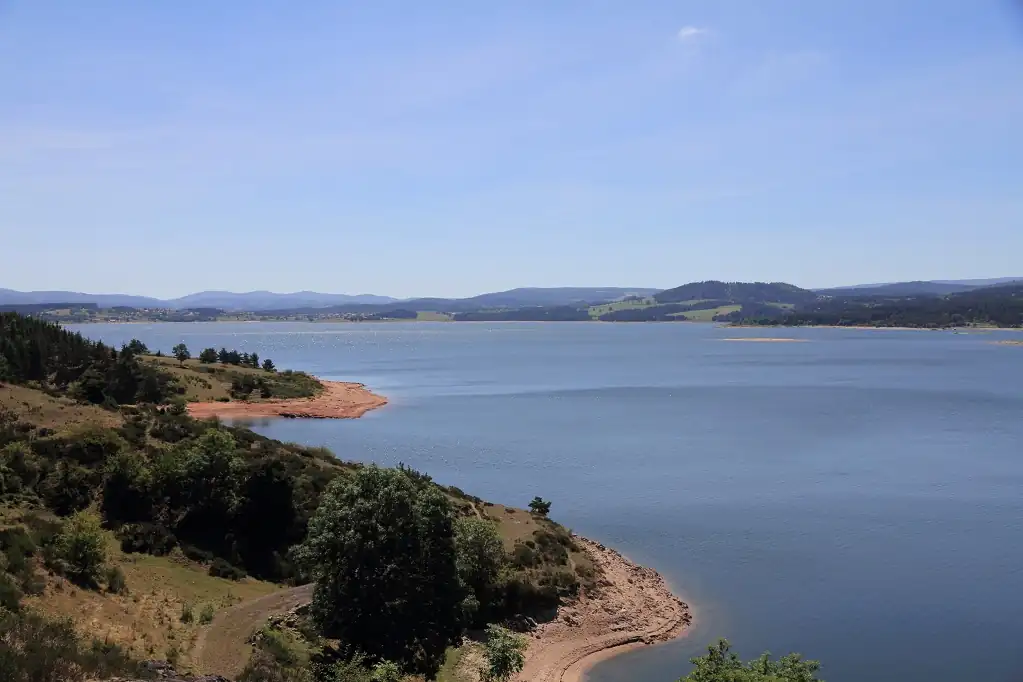 Profitez-en pour faire le plein de victuailles, parce que je vous amène au bord d'un des plus grands lacs de France. Après les ruelles et le brouhaha du marché, le contraste de cette étendue sera saisissant. S'étalant sur plus de 10 km², le lac de Naussac a été artificiellement créé grâce à un barrage construit sur l'Allier. Bonne nouvelle : ce plan d'eau est situé sur la commune de Langogne. Je me rends souvent jusqu'à Naussac à pied. Pas besoin de trouver une place pour se garer proche du barrage, et la marche se fait facilement en 30 minutes. En revanche, ce n'est pas le moyen de transport que je vous recommande pour profiter à fond de ce que peut offrir ce lac. Non. À mes yeux, le lac de Naussac se vit à vélo, ou sur l'eau !