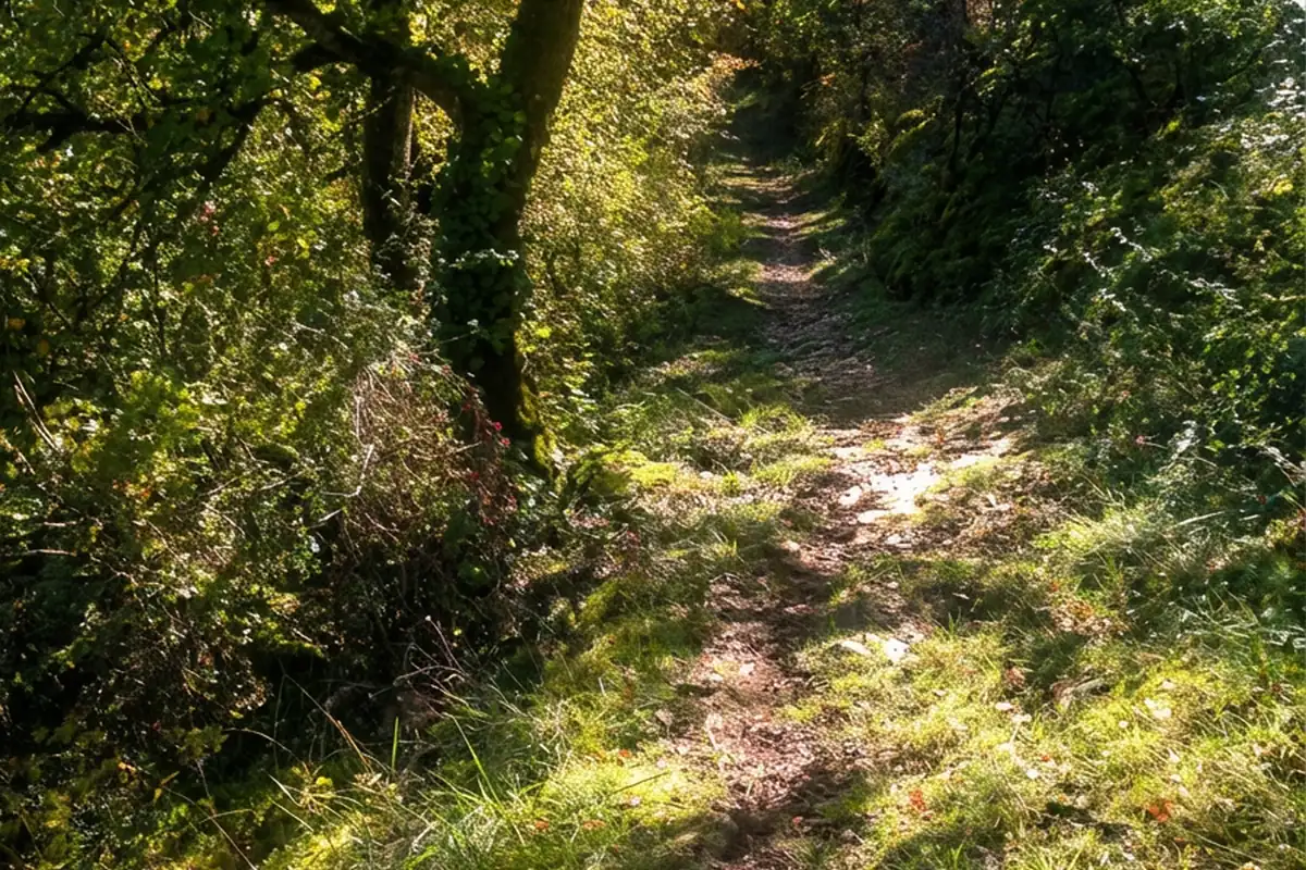 À l'ombre des grands chênes, le chemin des ruines