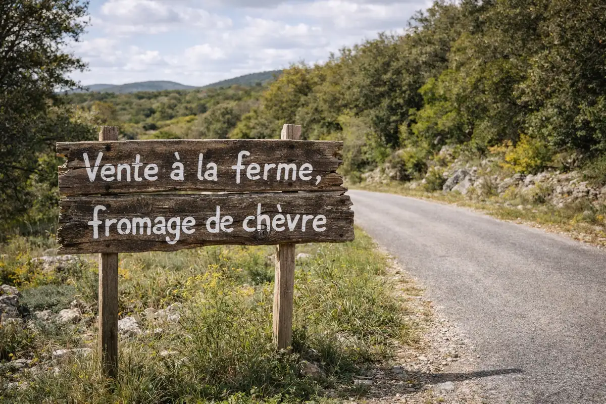 Je décide de la suivre un peu. Pas longtemps. Juste assez pour tomber sur ce genre de panneau qu'on ne remarque plus quand on est pressé : vente à la ferme.